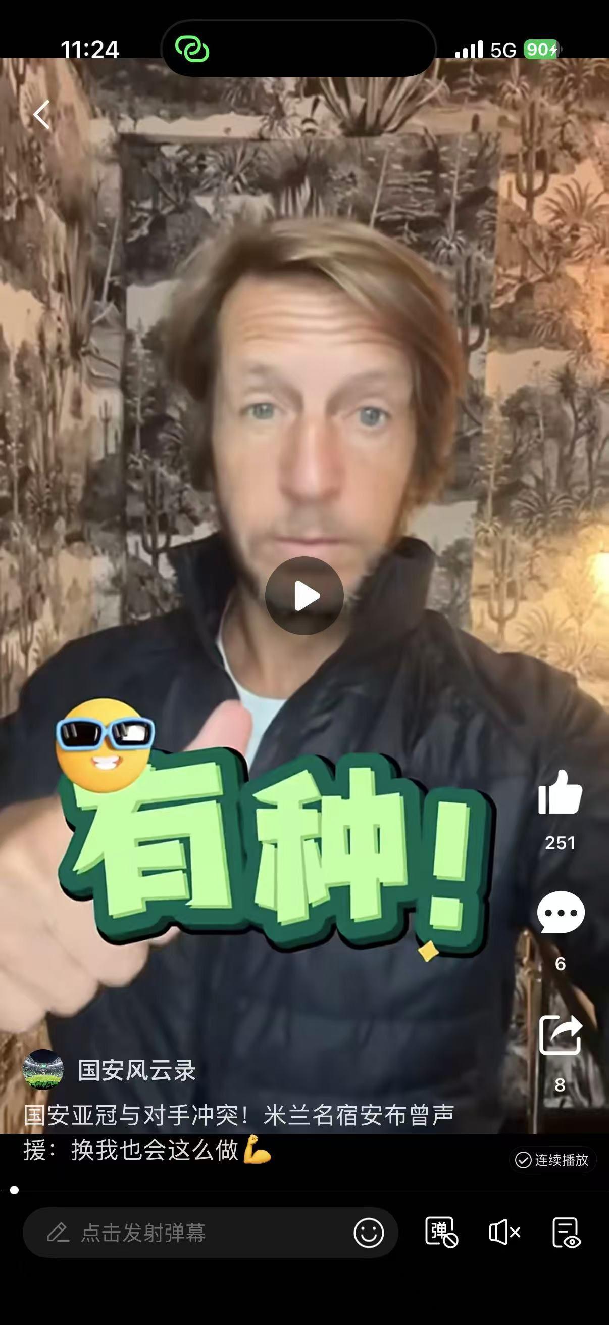 不过,对于国安在这场比赛中与对手发生冲突这件事,米兰名宿安布在赛后曾经专门拍摄视频声援国安,在视频中先是表示国安球员有种!同时,他还表示看到现场的视频,实话实说自己也会做出同样的举动,国安球员的目的是保护自己的队友,在受到对方球员的挑衅之后,在自己队友陷入危险之中,前来帮助队友,换作自己也会这么做,自己也永远会选择这条路,为队友出头是正确的,当然裁判可能会给出处罚,但是在场上没有人,可以触碰自己的队友,所以自己还是支持国安球员冲上去保护自己的队友,即便是因此吃到了处罚,也一定要团结起来。